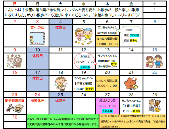 ⇒⇒こちらをクリック ランちゃんだより【11月号】